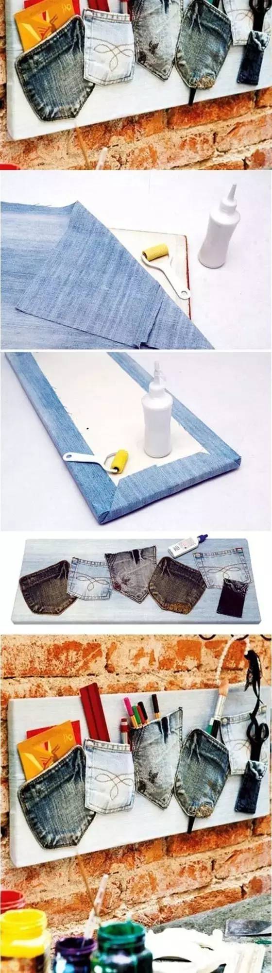 牛仔裤上的口袋可以剪下来做一个收纳袋。