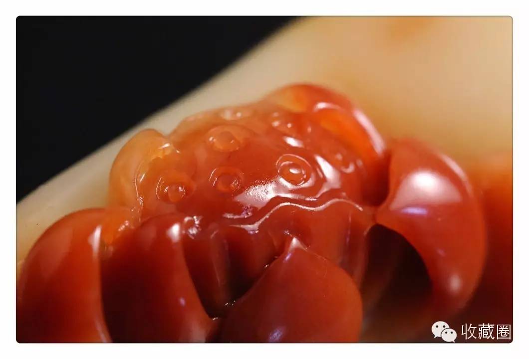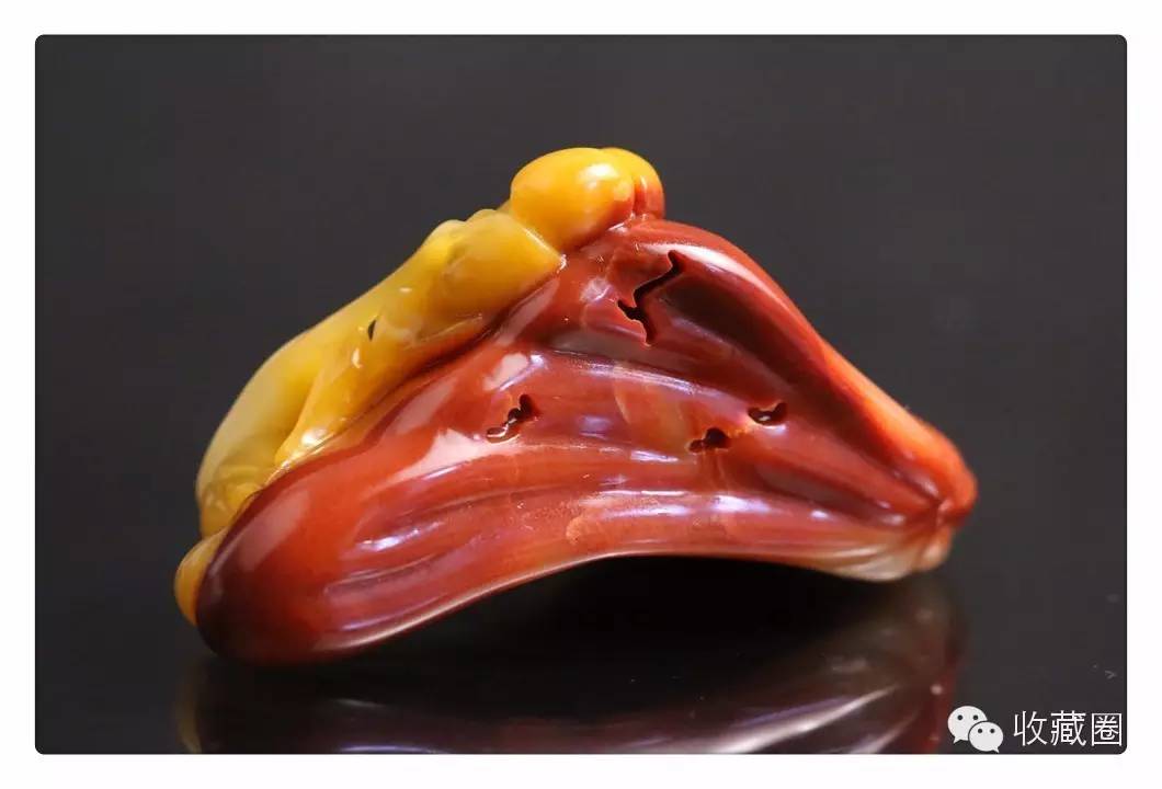 材料:天然寿山芙蓉石,红黄双色,石质凝润,色泽光亮;