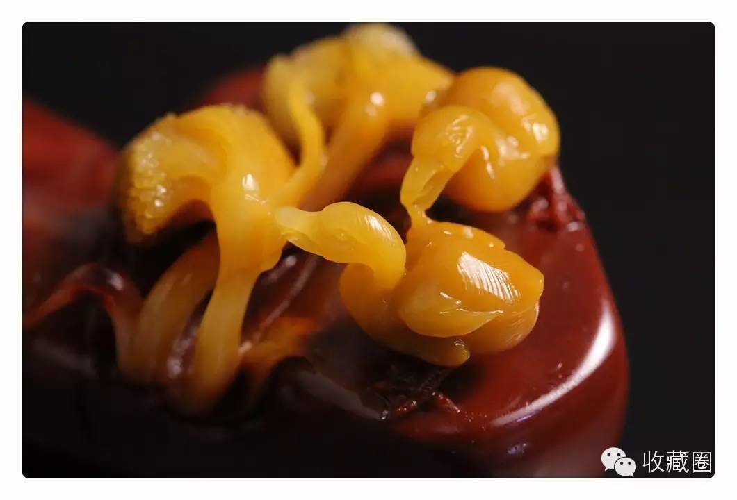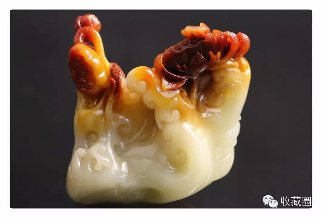 材料:天然寿山芙蓉石,石质坚洁,柔白与橙黄相融相交,尤为妩媚动人;