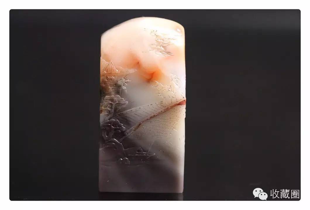 材料:天然寿山桃花芙蓉,白色石质中桃花点点或密或疏,浓淡演映,脂凝艳美;石质偏结晶。