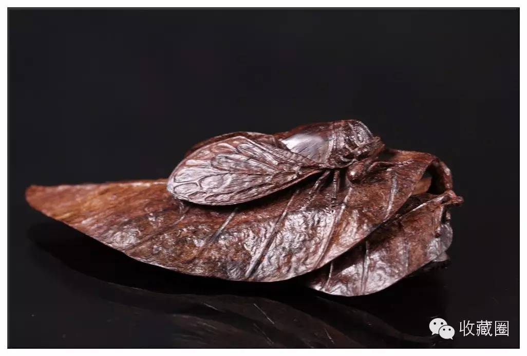 手工雕刻知了伏于叶片上,