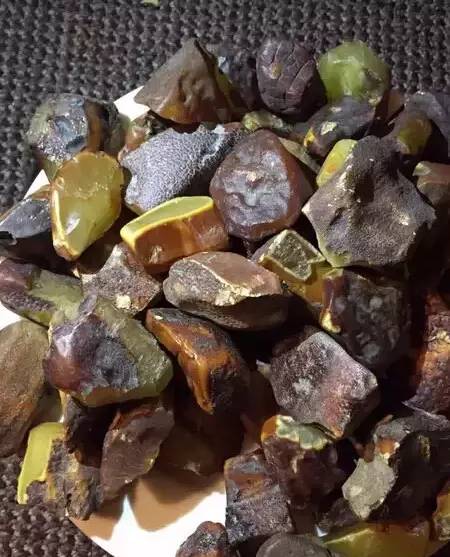 这些便是筛选出的水煮蜜蜡原石。材料完全是天然琥珀蜜蜡原石。大家能看出些端倪吗?皮与普通原石似乎没什么区别。
