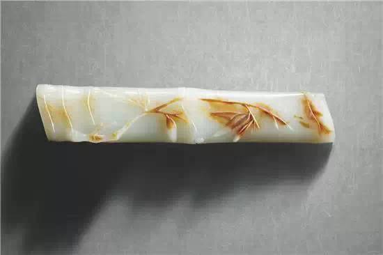 此款臂搁出自清乾隆年间,上有题诗“翠筠不染湘娥泪”七字隶书,篆书“翰墨”矾红章款。瓷类臂搁,出现在清乾隆之后,珍瓷品种不多,青釉存世更少,因此这件御制粉青釉竹节臂搁在2002 年翰海秋拍中拍出了至今未破的瓷类臂搁最高价。
