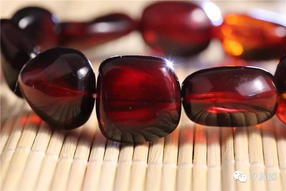 缅甸的血珀通透明亮,血色纯正,不带黄色和褐色的,是天然血珀中的极品,不管是灯光下还是自然光下,都如同血色一样红得鲜亮。