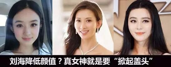 刘诗诗也是典型的无刘海美女,盘起的长发的她看起来及其高贵有气质。但看旁边这款齐刘海短发明显就是女神和屌丝的区别。遮住眉毛的齐刘海让眼睛看起来很没有神,土里土气的哪还有女神的感觉。