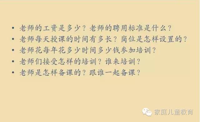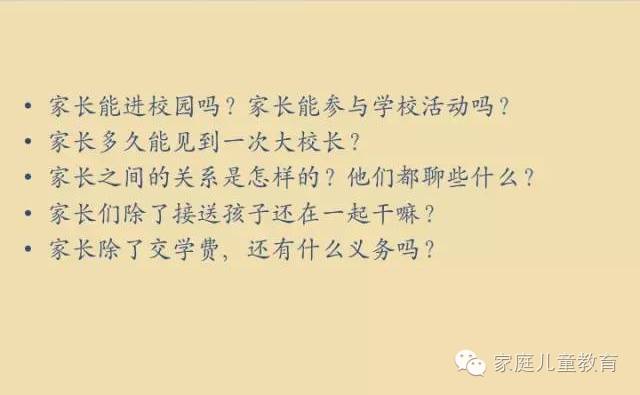 问了学校那么多,但是我再想提醒大家,一年365天,开学的时间,国际学校是177~193天之间,半年。一天24个小时,学生早上来,晚上走,在学校时间也就是8个小时,三分之一。所以学校只承担了六分之一的教育任务,真正对孩子产生深远影响的人并不是学校,而是家长自己。请你们勇敢的担负起这个责任来,勇敢的问自己一些问题,不要把自己当成教学的消费者和旁观者,做家长该做的事情。所以这张PPT告诉你们一些该问的问题,你们该做的功课。