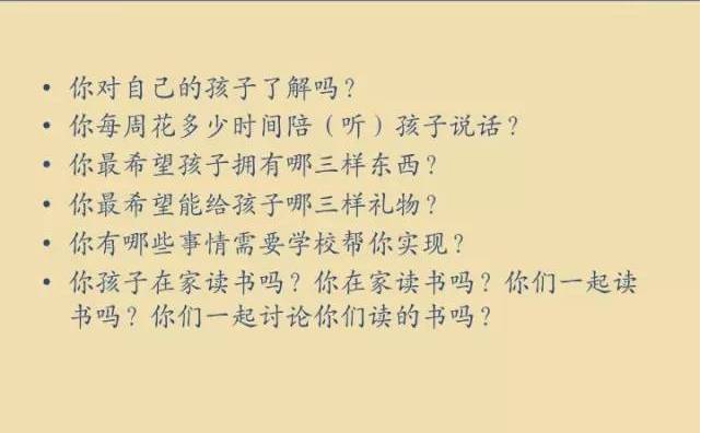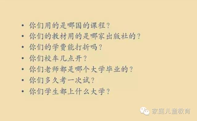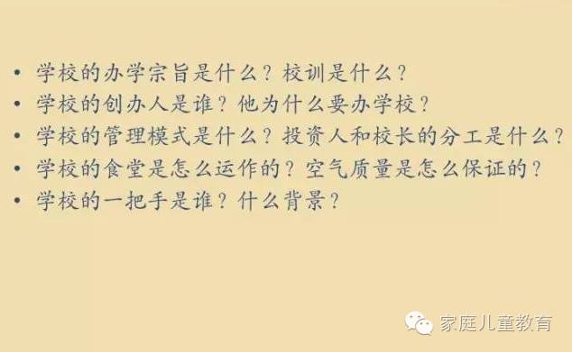 第一,能从网站和宣传资料上找到答案的问题不要问,那纯粹是浪费校长时间。第二,问出来会让人觉得你不够档次的问题不要问,校长是不会跟你谈钱的事的。第三,那些和学校价值观完全不符的问题,一问出来,校长就知道你们不是同路人。