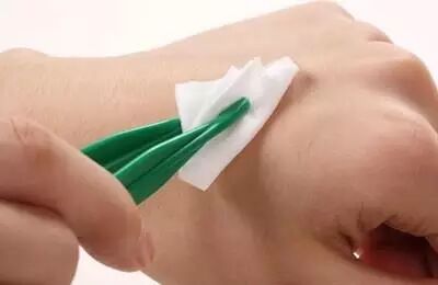 4、沾有络合碘或75%酒精消毒液的棉球擦拭伤口,于伤口外缘3-5厘米处,以创口为圆心,由外周向创口内逐渐消毒创面2次;切勿随便涂抹紫药水或其它药物。