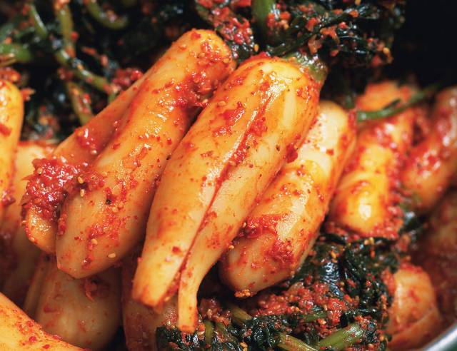 萝卜先用盐淹两天,再用重物把水压出去。然后把辅料拌入即可。