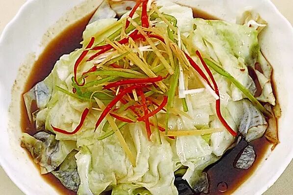 1、圆白菜去掉黄叶,削去根部,洗净,用刀切成两半或四半。