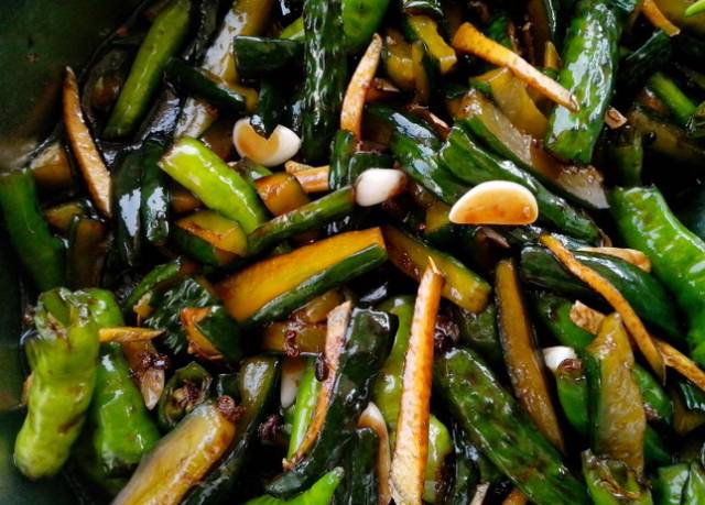 酱油烧开晾凉,黄瓜用盐淹16小时后,再用重物压10小时。辣椒切块,姜蒜拍碎切块,和其他料一起放入酱油内即可。