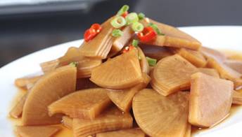将萝卜皮切成丝或小块,加五香面、盐、酱油泡拌匀,两小时后即可食用。