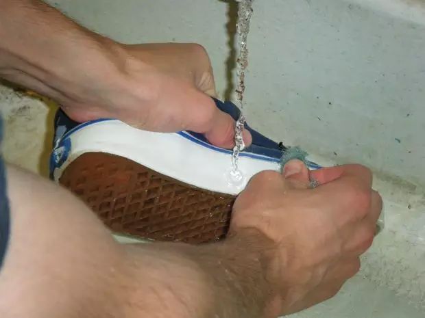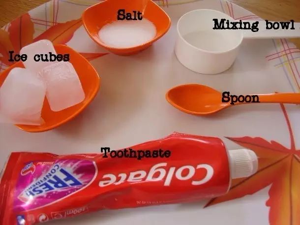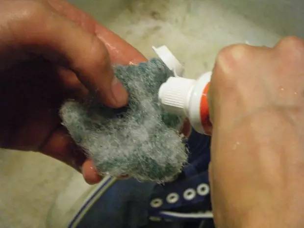材料:牙膏,磨砂海绵(鞋刷也行)