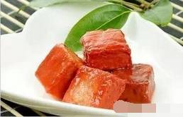腐乳上面附着的一层红色物质,是纯天然的添加剂。这种成分叫红曲,是天然的血脂清道夫。