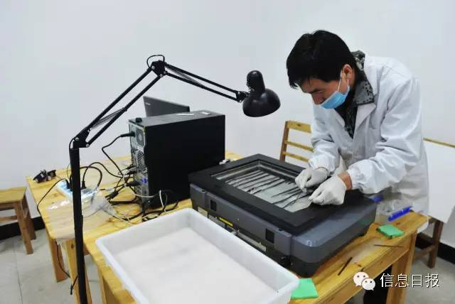 ▲通过红外扫描,对竹简上的文字进行辨识