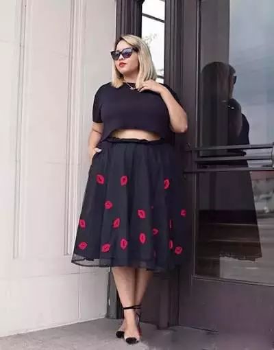 Nadia喜欢带有小性感的女人味装扮,从不害羞展示自己的身材,大号身材的时尚搭配秘诀绝对不是依靠大量遮挡!