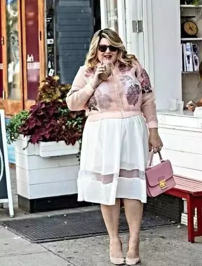 居住于布鲁克林的NicoletteMason本身就是一名时尚编辑,用短款上衣来拉伸比例是很好的搭配方法!粉色印花短外套+白色拼接纱裙+白色尖头高跟鞋+粉色手提包。