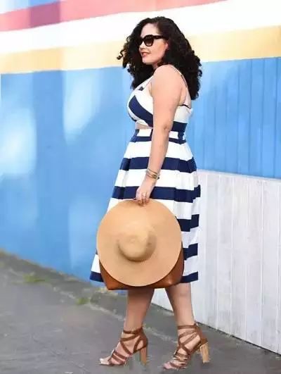 身兼时尚部落客和设计师的TaneshaAwasthi,一头宝贝卷发是她的特色,大胆地穿着条纹连衣裙竟然也有很好的效果!