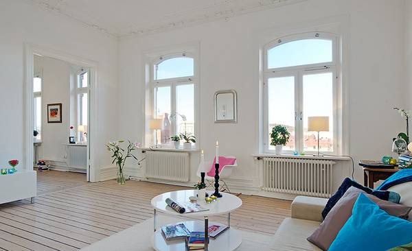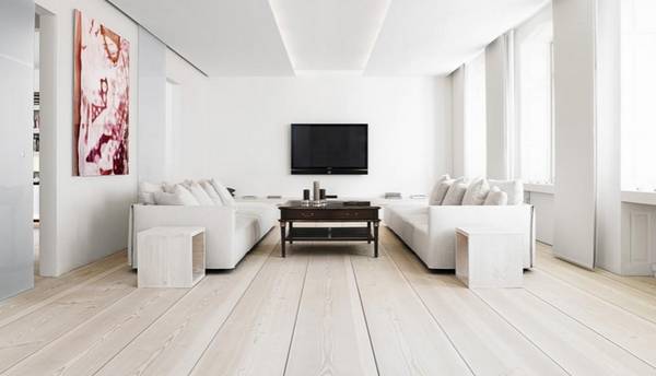 直接在松木地板上刷清漆后呈现的颜色略带黄色调,营造出一个很温暖的氛围。