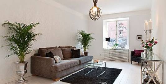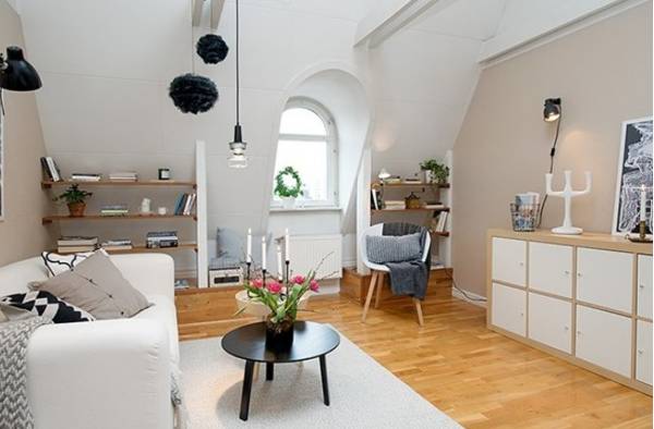 白色墙壁和深茶色地板搭配,让小户型的空间显得很大。