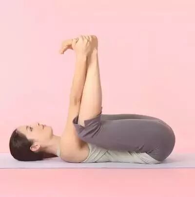 保持尾椎骨始终贴于在瑜伽垫上,双手抓住脚背外侧。
