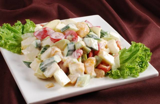 沙拉酱、蛋黄酱都是热量极高的调味酱,100克沙拉酱大概有724大卡的热量,如果吃蔬菜沙拉的时候放太多沙拉酱,结果反而得不偿失,所以减肥期间可以用健康的橄榄油来替代沙拉酱。