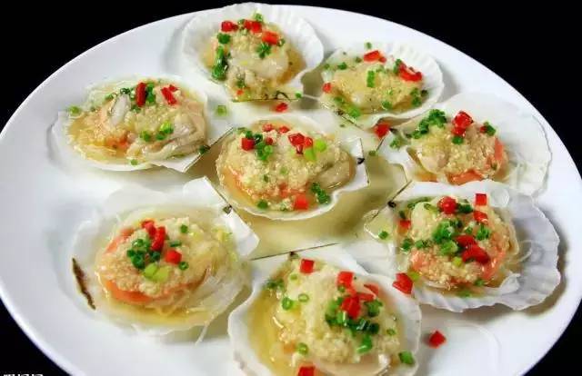 5.锅中倒入清水,扇贝放入锅中,加盖,隔水蒸八分钟,出锅,撒些葱花点缀。