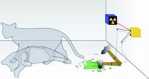 薛定谔猫是诸多量子困惑中颇具代表性的一个。一只猫被封在一个密室里,密室里有食物也有剧毒的氰化物毒药。毒药瓶上有一个锤子,锤子由一个电子开关控制,电子开关由放射性原子控制。如果原子核衰变,则放出阿尔法粒子,触动电子开关,锤子落下,砸碎毒药瓶,释放出里面的氰化物气体,猫必死无疑。