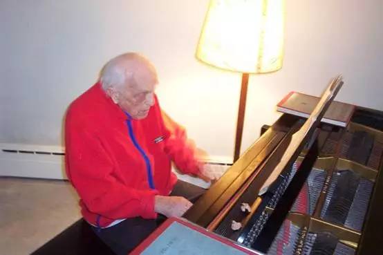 2000年,89岁的A·拉波波特照例在入睡前弹钢琴。 (闵家胤摄)[page]