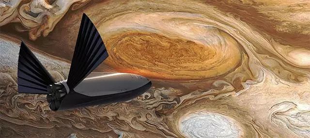 SpaceX“星际运输系统”中的飞船将不仅仅用在火星上,这是飞船在木星轨道上飞行的艺术效果图。
