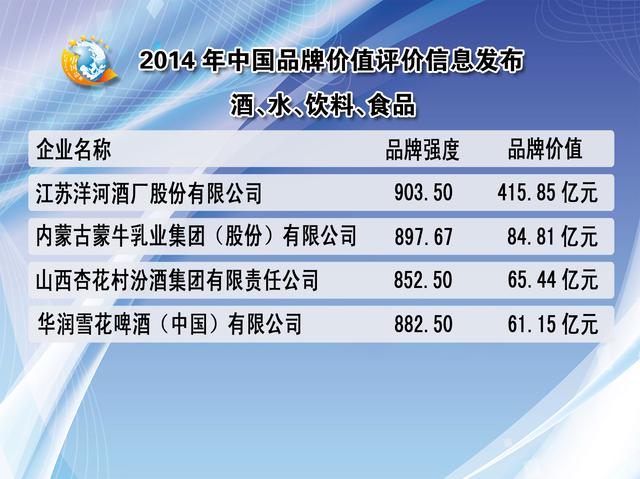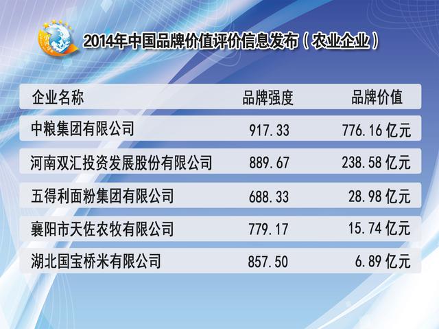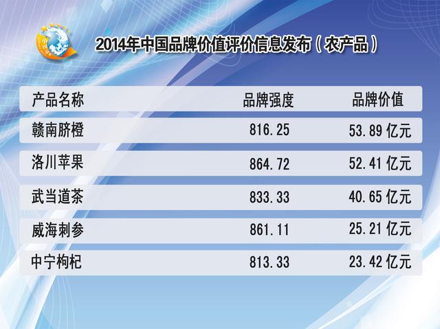 2014年12月12号在中央电视台举办2014中国品牌价值评价信息发布会。此次发布会是由中国中央电视台、中国品牌建设促进会、中国国际贸易促进委员会、中国资产评估协会、中国标准化研究院,中国优质农产品开发服务协会,并由上述几家单位作为发布主体,联合发布评价信息。