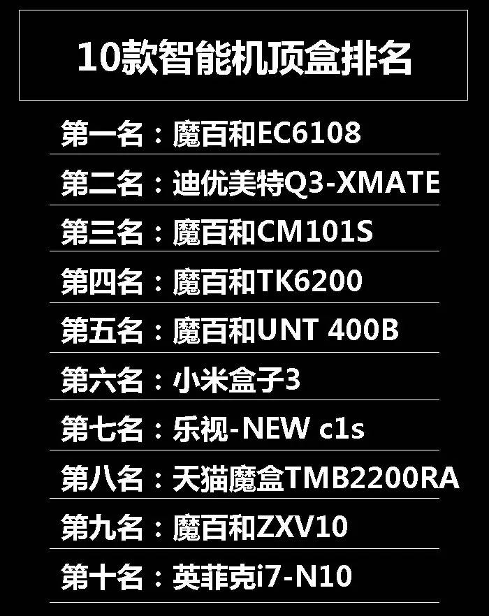 随着网络电视的普及,智能机顶盒也越来越走进更多的家庭中,到底该如何挑选机顶盒呢?精品生活需要一款精致可靠的机顶盒,测评十款热门机顶盒,重点从性能、稳定性、发热3项关键指标进行比较,得出下面的排名: