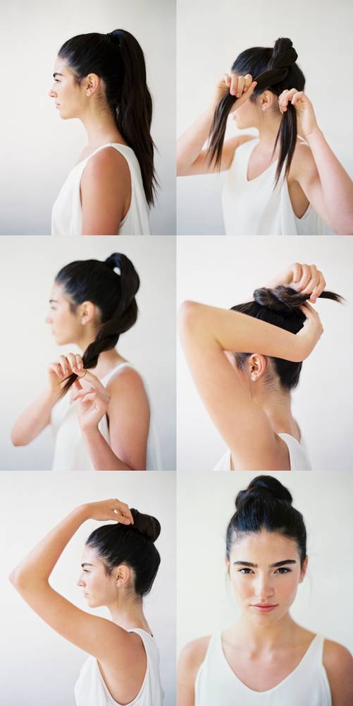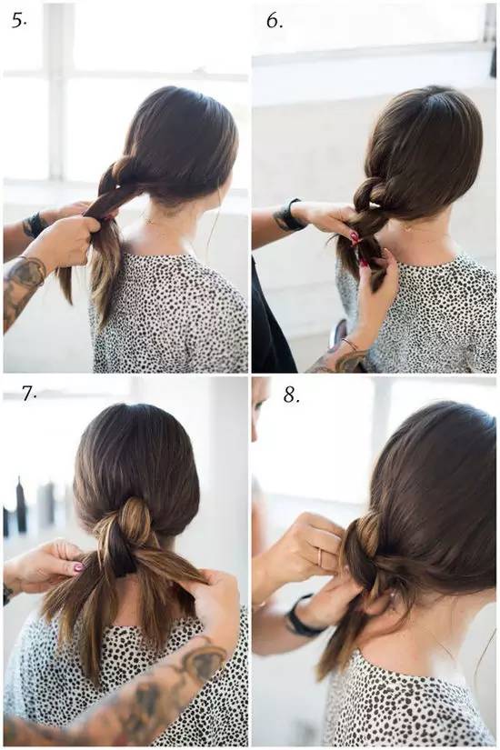 注意,这样的发型很大程度上是靠“发结”自己的固定力,所以头发需要长一点,留出的发尾长一些才不易松散,最后喷上定型摩丝加固。