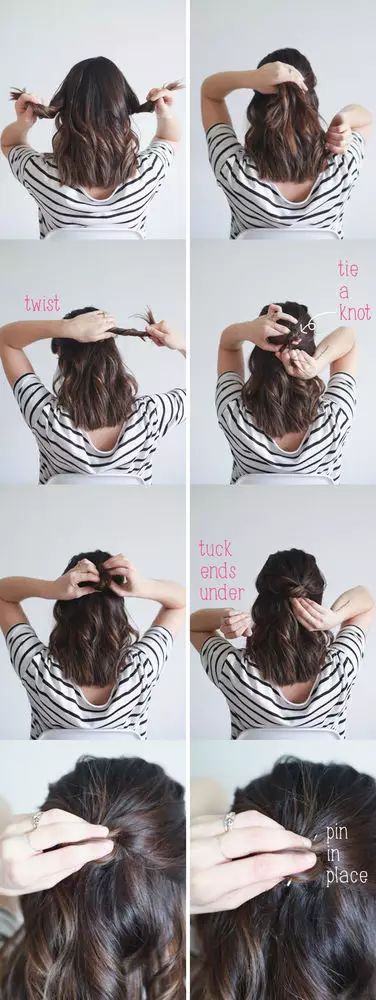 1、把头发分成平均的两半,打一个结,就像平时打绳结一样,接着再打一个结,用发卡固定。