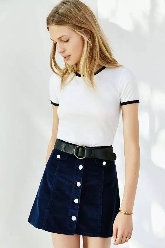 这种原本是美国夏令营“校服”,青春活泼还单纯。不过后来却风靡了整个美国50年代。莫名其妙就“制服诱惑”火起来,一定要试一试。T恤+复古A字半裙。