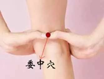 委中穴寻找方法:取该穴道时候患者应采用俯卧的取穴姿势,委中穴位于腘横纹中点,股二头肌腱与半腱肌腱中间,即膝盖里侧中央。
