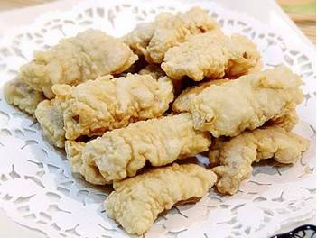 原料:猪里脊肉150克、绍酒20克、香油10克、鸡蛋清2个、面粉50克、水淀粉50克、盐2克、味精1克、油适、花椒盐