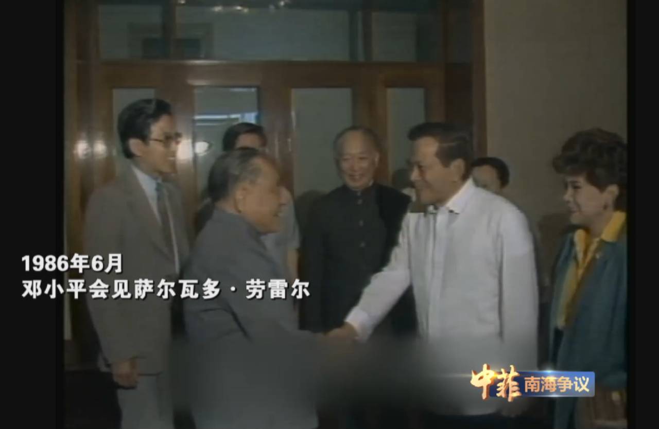 1986年6月,中国领导人邓小平在会见菲律宾副总统萨尔瓦多·劳雷尔时,指出南沙群岛属于中国,这个问题可以先搁置一下,先放一放。过几年后,我们坐下来,平心静气地商讨一个可为各方接受的方式。我们不会让这个问题妨碍与菲律宾和其他国家的友好关系。
