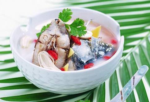 材料:带皮冬瓜一斤、鲤鱼一条、生姜三片、葱两条、白糖半茶匙、胡椒粉