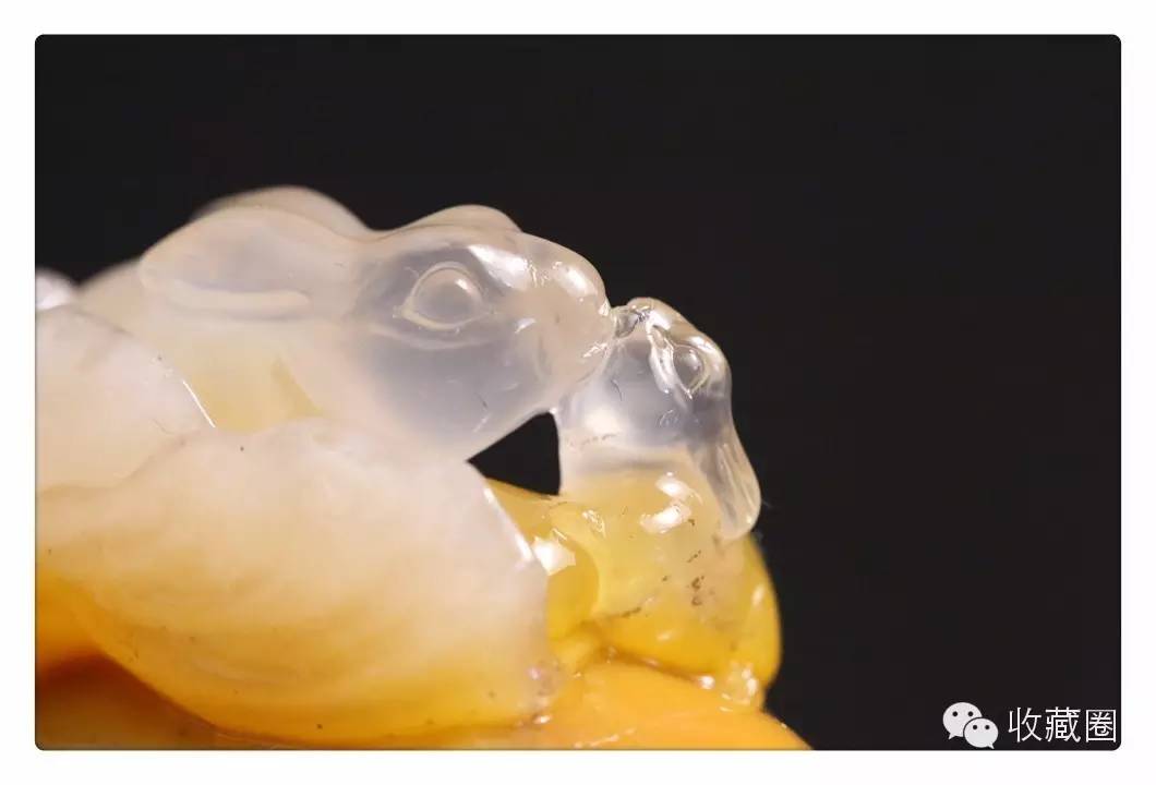 工艺:莹澈部分随形巧雕母子兔,两首相偎,惟妙惟肖。