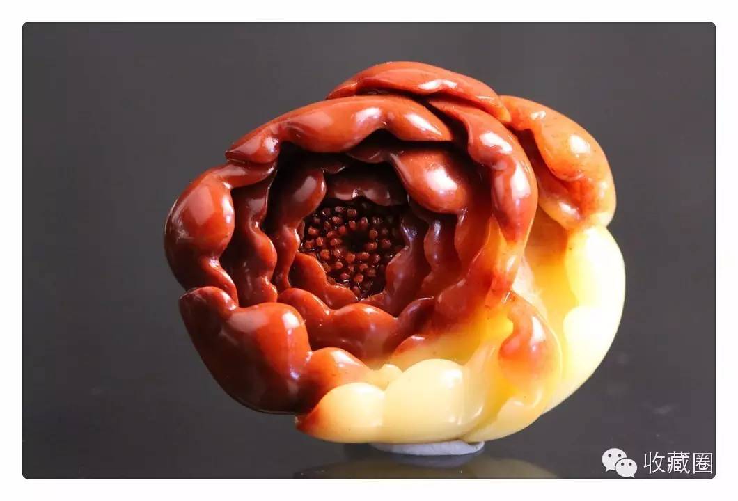 材料:天然寿山双色芙蓉,红黄色彩过度柔和,油润细腻,娇艳欲滴;