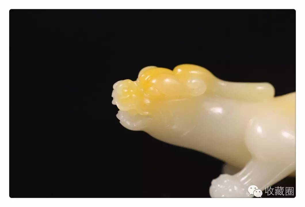 工艺:立体雕刻古兽造型,古兽呈步行前进状,目光炯炯有神,好似紧盯猎物,蓄势待发,工艺精湛,神形俱佳。