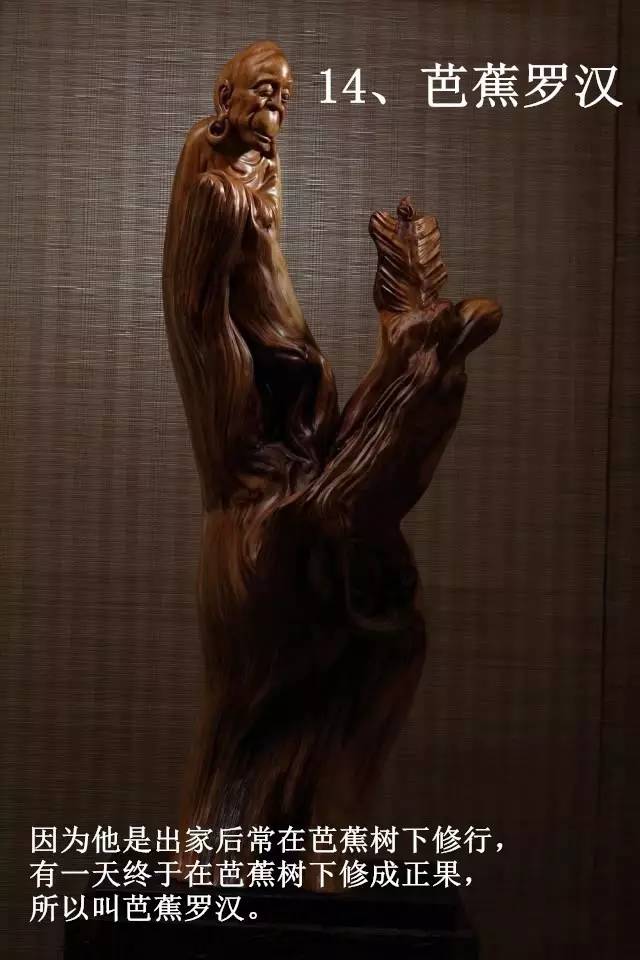 这一套价值500万元的崖柏根雕十八罗汉作品,根据崖柏根部的纹理走势、质感融合国画写意,七分天然,三分雕琢。形态各异,自成体系。