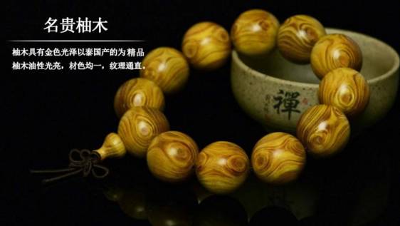 金丝柚手串常被用来冒充金丝楠手串,金丝柚木无香味的喔!金丝柚木的横切面有非常多的小孔洞,这是树木生长的运送水分和养分的导管,而金丝楠木横截面则看不出明显的这种状况。