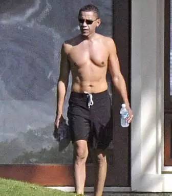 且慢!据说美国总统奥巴马每周坚持至少锻炼6 天,每次锻炼大约45 分钟,只有星期天才会休息,他每天早上起床后的第一件事,就是冲进他的健身房开始锻炼。所以人家这样一位总统,也敢在公众面前光着上身,秀一下自己健壮的身躯。