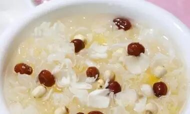 3、绿豆开花,山药酥软的时候加入洗净的百合,然后转大火,让米汤沸腾两分钟,再放入几粒枸杞,煮一阵子然后关火。