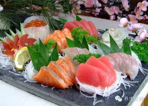 生鱼刺身、醉虾等生冷海鲜也是喝酒的大忌。因为鱼贝中含硫胺素酶,会使维生素B1分解破坏。硫胺素酶加热到60摄氏度才能失去作用,因此,长期吃生鱼生贝易造成维生素B1缺乏。喝酒时,酒精会妨碍小肠对维生素B1的吸收,所以若在生吃海鲜的同时大量饮酒,维生素B1缺乏的问题就会更加严重。