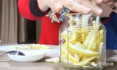先把柚子皮的白色部分去掉一些,切成丝放进瓶子里。↓