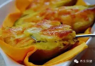 做法:把洗净的红薯放在微波炉中高火加热5-8分钟取出,然后把红薯肉挖掉,留下厚点的皮备用,把热热的红薯肉、黄油、芝士片、牛奶、吉士粉和糖一起搅拌均匀,做成馅,放回红薯皮内,上面刷一层蛋液,烤箱180度时烤20分钟,直到表面稍微焦一点即可。
