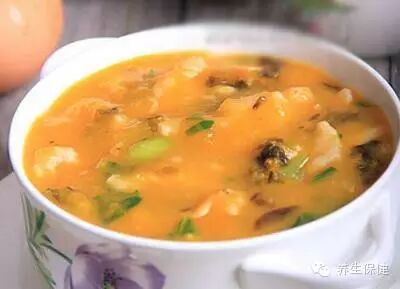 2、待肉汤或水煲开,倒入紫菜、豆腐、肉片,再开时,加些生抽、醋、盐、麻油及葱粒即成。
